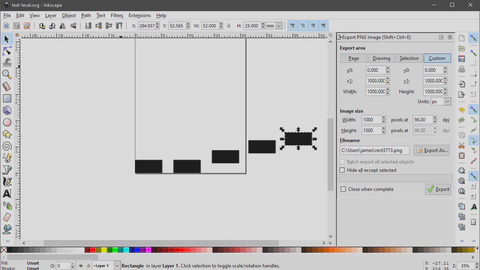 So the workflow is to draw the level shapes in Inkscape, save the SVG file into my Godot project’s directory and then use the XML parser to pull out the co-ordinates of the shapes. The code in Godot then instantiates a 1x1x1 unit cube and scales it to be the correct size.