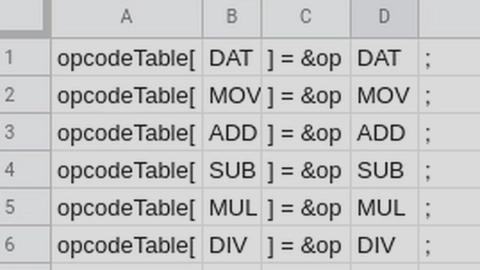 Next, type out all the opcodes into column B. This takes some effort, but it’s the only time you’ll need to do it