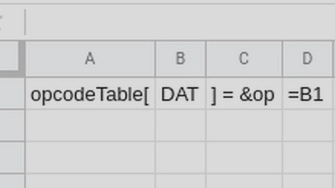 Next, type out all the opcodes into column B. This takes some effort, but it’s the only time you’ll need to do it