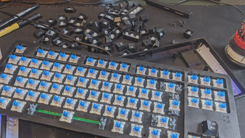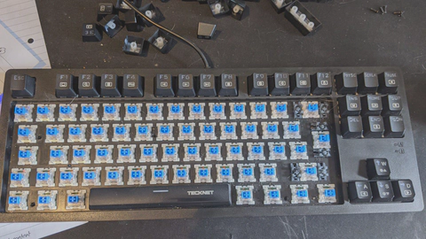 Anyway, my cheap Tecknet keyboard started acting weird the other day. The ‘Enter’ key wouldn’t always register a click the first time, it seemed to need pressing twice. Figuring it was probably dirty I started prying keys off to see what was under them…