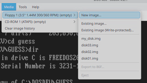 To get files out of DOS is a bit more annoying. About the only way I can easily figure out is to make floppy disk images and then mount them in your host OS.